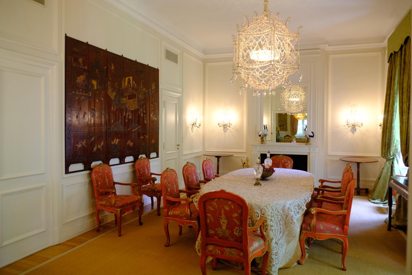 Decorado con mobiliario, cuadros, alfombras, objetos, luminarias y cantoniers de seda, finamente seleccionados, de gran valor.